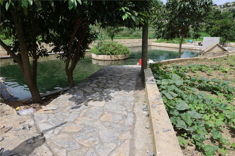 落叶新村凉水井组把通往水井的路面铺成了石板路